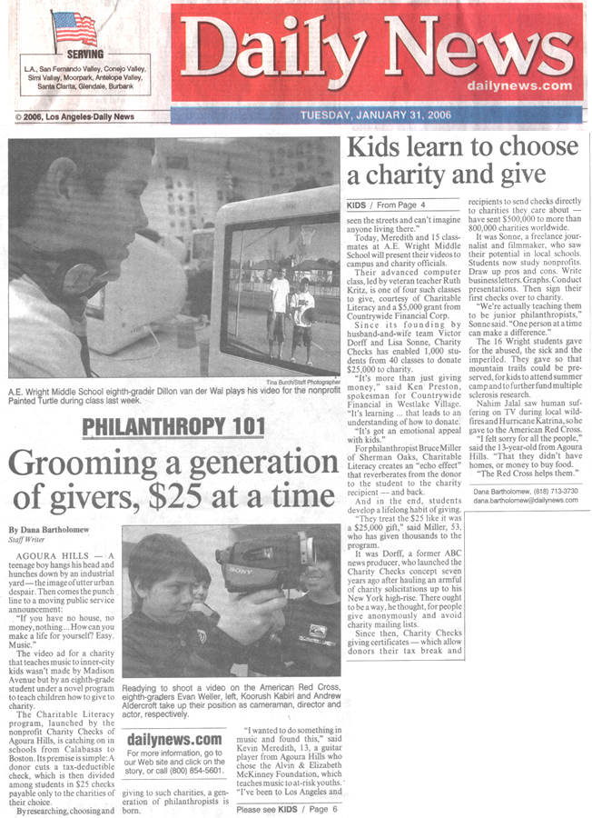 | Kids Learn to be Philanthropists with Charity Checks |